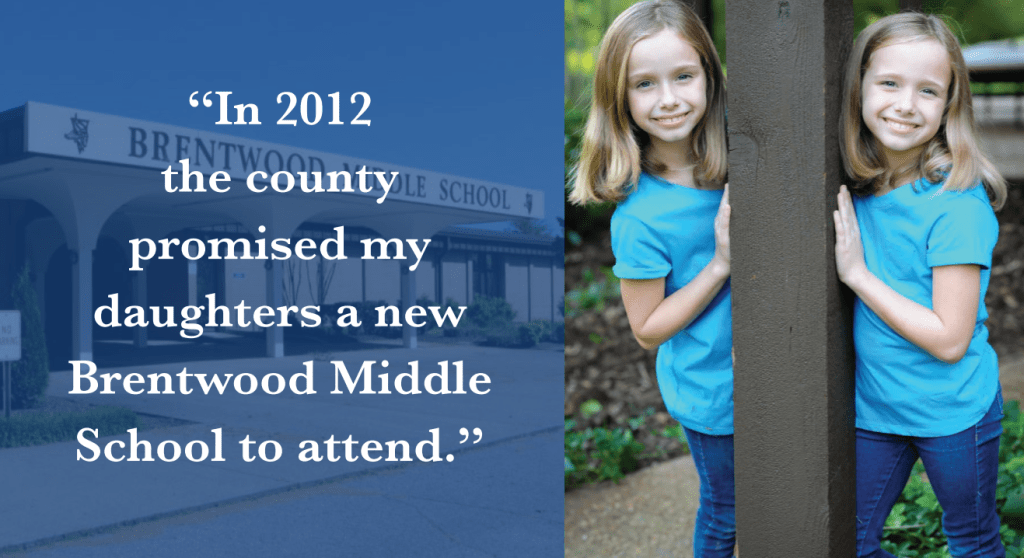 Brentwood has the oldest middle school in the county. Brentwood Middle School is 50 years old! Brentwood gives the most in total tax dollars but we get the least back on our investment.